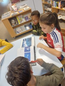 Dans le cadre de leur travail avec le musée de Pont-Aven, les cm participent à un concours : faire la 1ère de couverture du livre de Bertrand Puard : « les mystérieux visages de Pont-Aven ». Les élèves ont bien travaillé, leur couverture est magnifique. Nous espérons qu’ils vont le remporter !