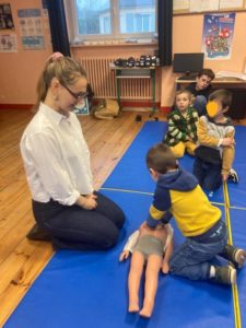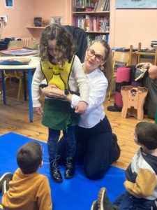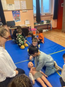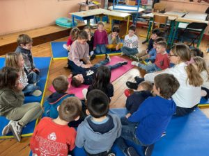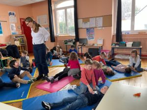 Lola a rejoint l’équipe en tant que Service Civique. Son rôle est d’aider les enseignantes mais aussi de mettre en place des activités périscolaires sur le temps du midi et à la garderie. Jusqu’à Noël, la 1ère activité organisée sur le temps du midi est un atelier gym. Par groupe, les enfants s’entraînent et préparent aussi un spectacle afin de le montrer à leurs camarades avant les vacances.