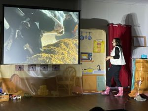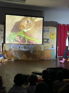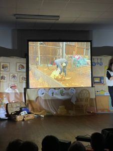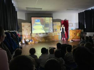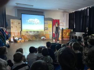 C’était une animation vivante avec une projection vidéo sur grand écran, une histoire interactive, des chansons, des jeux… Les enfants ont donc participé activement à cette histoire.