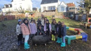 Le 25 avril, la rentrée s’est déroulée sous le signe de la St Patrick. C’était une magnifique journée pendant laquelle les enfants ont accueilli 2 correspondantes de ce pays : Lucie et Emmanuelle. Au programme : confection de pâtisseries irlandaises (pancakes, crumble, scones), chants et danses sur ce thème (gigue…), bricolage et peinture. L’après-midi, les élèves se sont réunis dans la cour pour partager ce moment de convivialité et présenter tout ce qui a été fait durant la journée. Lucie, la petite élève irlandaise a aussi raconté aux enfants comment se passait son quotidien à l’école dans son pays.