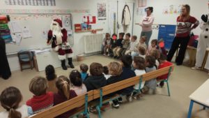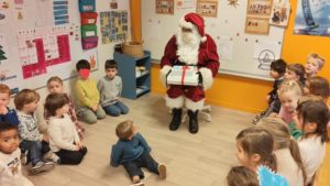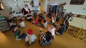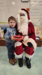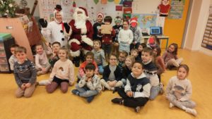 Jeudi 19 décembre 2019, le Père-Noël est venu à l’école ND du Sacré Cœur. Il s’est installé dans le hall avec tous ses paquets. Après avoir félicité tous les élèves d’avoir été sage et d’avoir bien travaillé, il a offert des cadeaux pour chaque élève de la maternelle, de CP et de CE1. Avant de se quitter, les enfants ont montré leur talent de chanteur en entamant des chansons comme « Petit Papa Noël », « mon beau sapin »… Les enfants sont allés ensuite manger un petit goûter (pain au chocolat et jus de fruit) offert par l’APEL.