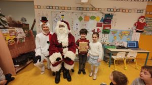L’après-midi, c’est son Lutin « Guimauve du Nord » qui est venu apporter des cadeaux aux CE2-CM1 et CM2. Ce petit lutin nous a raconté plein de secrets de la vie des lutins au Pôle Nord. Puis il est resté lors du goûter de Noël offert par l’APEL.