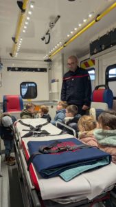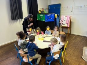 Une belle fête dans le hall où nous avons chanté et dansé sur la comptine de Nathalie Tual « Si c’est bleu ». (Vous pouvez retrouver toutes les chansons qu’on apprend sur youtube)
